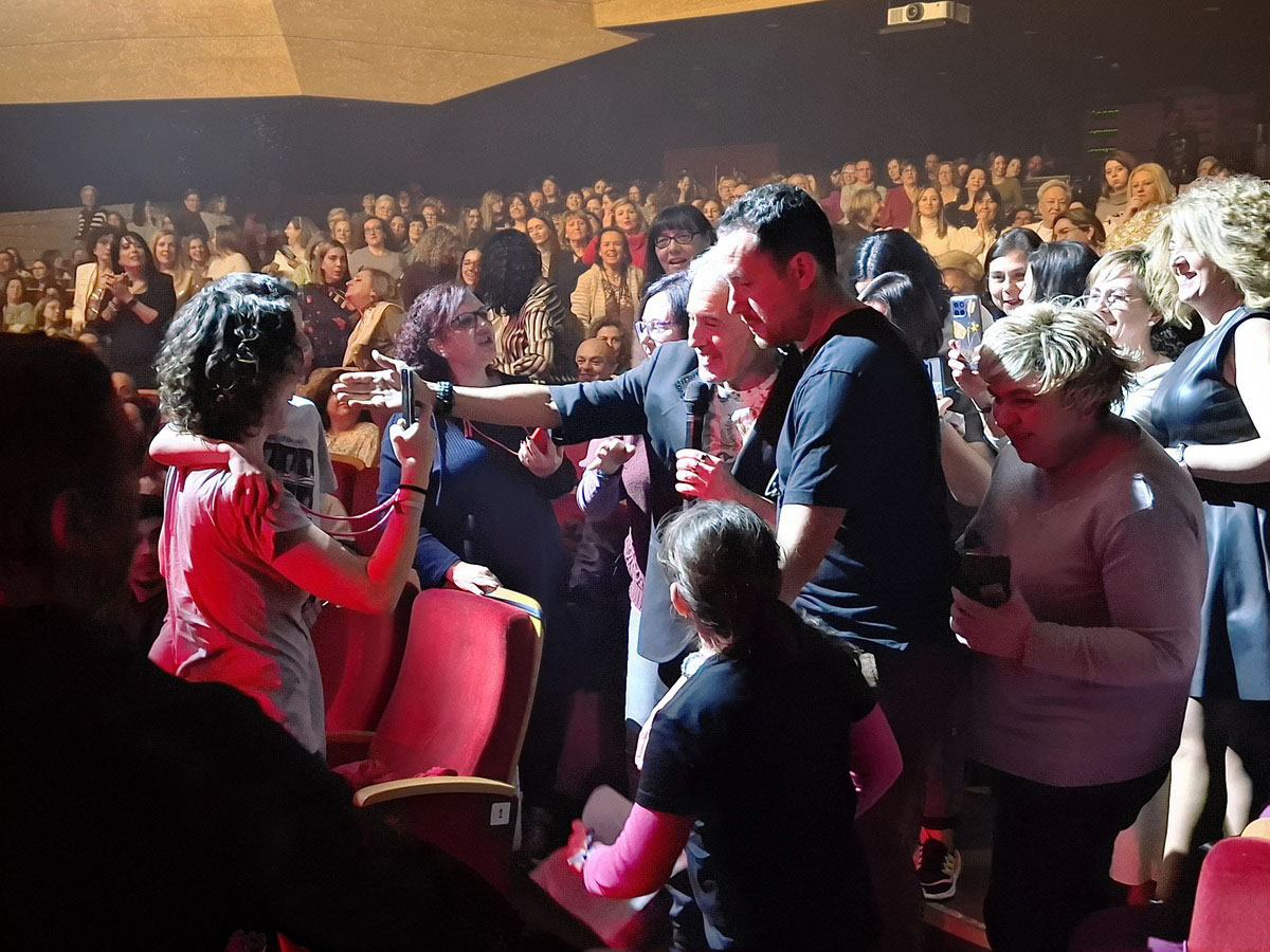 Desde la primera canción buscó la sonrisa de los asistentes, entre los que se encontraba el alcalde, Miguel Ángel Ruiz, y lo consiguió gracias a su permanente cercanía y complicidad, bajó al patio de butacas, se rodeó del calor y la admiración de sus seguidoras, y encontró el cariño de los niños y niñas asistentes, como el pequeño Rubén que reconoció que sentía predilección por todas sus canciones.