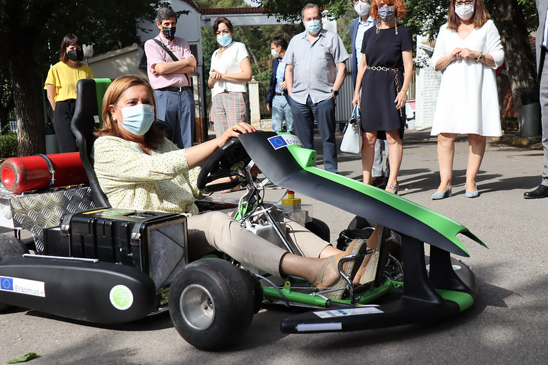 Ha concluido la visita realizando un test del kart de hidrógeno realizado dentro del proyecto Erasmus ‘Manufacture a Kart with Alternative Energies’ y asistiendo a una demostración del taller de carnes ahumadas del horno ahumador STEAM, y de vinos y aceites elaborados en el este centro educativo.