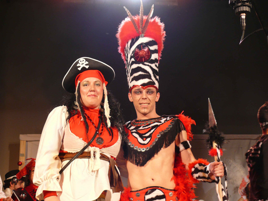 La velada comenzó con la celebración de la XXVIII edición del Concurso de Trajes «Museo del Carnaval», que abrió la participación tanto a las peñas locales como a las máscaras a título individual. Así, el premio para el traje de mujer, premiado con 400 euros, recayó en el Arlequín de «Barón Amarillo» y hombre dotado con 350 euros recayó en la peña «El puntillo» y sus trajes  «Africanos».