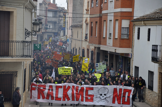 Junto a ellos, defensores de la naturaleza, cazadores o, simplemente, vecinos en general, salieron a la calle para expresar su rechazo a la llegada a la comarca de la peligrosa técnica extractiva de gas.