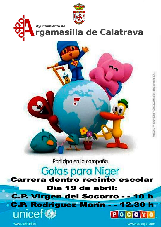 Este viernes 19 de abril Argamasilla de Calatrava celebrará la Carrera Solidaria del Agua ‘Gotas para Níger’, que promueve la organización UNICEF, en colaboración con el Ayuntamiento y los colegios educativos de Infantil y Primaria de la localidad en el marco de las VII Jornadas Solidarias. El objetivo de esta acción deportiva con los escolares es movilizar en torno al derecho al agua potable, el saneamiento y la higiene.