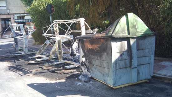 Agentes de Policía Nacional, adscritos a la Comisaría de dicha localidad, junto con la colaboración de Policía Local, han detenido a dos personas como presuntas autoras de la quema de 17 contenedores, 5 vehículos y daños en el escaparate de una peluquería y el mobiliario de una vivienda, informa la Delegación del Gobierno en una nota.
