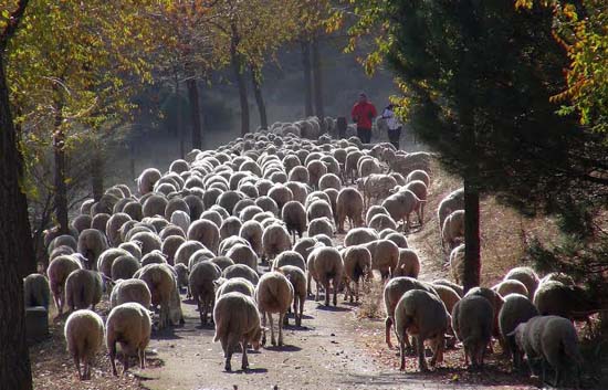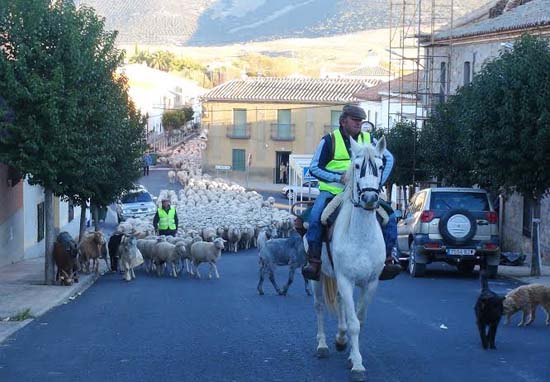 Se trata del rebaño del mismo ganadero que en los últimos años lleva de esta forma sus ovejas desde Cuenca hasta el Valle de Alcudia. Tres pastores, dos a caballo y uno en un vehículo de apoyo, conducen a estas 1.400 ovejas con la ayuda de varios perros de carea y mastines. A una media de 18 a 20 kilómetros diarios, tardan aproximadamente un mes en hacer este recorrido. En mayo regresarán a pastar a su lugar de origen.