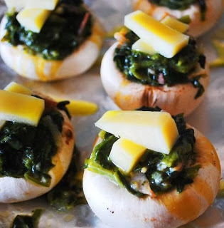Rellenamos los champiñones con las espinacas y cubrimos con el queso gruyere.