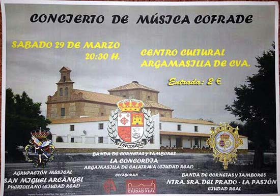 A la banda de música Cofrade de Argamasilla de Calatrava se unirán dos bandas de ámbito provincial de gran calidad como son la Agrupación Musical San Miguel Arcángel, de Puertollano, y la banda de Cornetas y Tambores Nuestra Señora del Prado – La Pasión, de Ciudad Real.