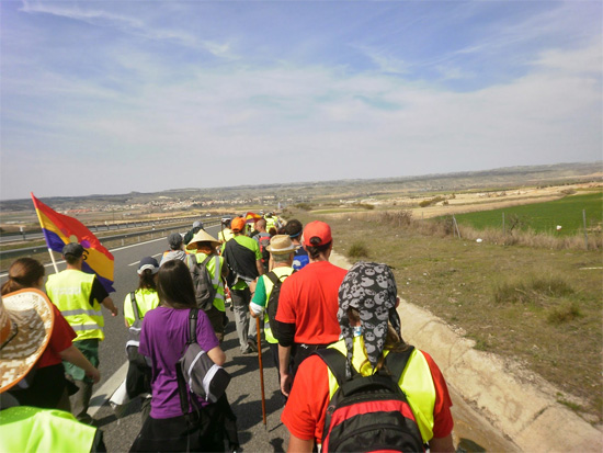 Y como siempre, hay altos en el camino, que sirven para reponer fuerzas y para saborear el paisaje, constatando que los anhelos de cada uno/a de nosotros/as son compartidos por mucha más gente en lugares que ni siquiera conocíamos. Los recibimientos de la gente de los pueblos de la ruta con sonrisas cómplices, con lágrimas de emoción y/o con el puño en alto, hacen que el desayuno, la comida o la cena, preparada por extraños/as, sepa igual o mejor que en nuestra propia casa: caldo de patatas con bacalao, con cordero, con verduras, cocido, estofado de habichuelas, tortillas de patatas, macarrones, bocadillos de chorizo, caldo reparador, fruta, café con leche, magdalenas, galletas,… Una metáfora de lo que es la cooperación entre iguales: dividiendo tareas y estando prestos a echar una mano en todos aquellos temas que incumben a la comunidad. Sin temer ni preocuparnos por la manera en que resolveremos nuestras necesidades básicas, porque sabemos que si todos/as nos responsabilizamos de todos/as, hay recursos y manos de sobra para que nadie quede marginado, y para que además, crezcamos como personas y nos lo pasemos bien.