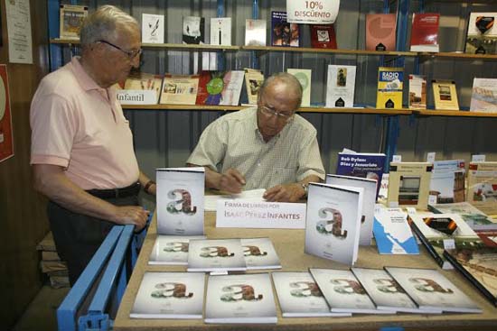 En el cuarto día de celebración de la ‘Feria del Libro de Puertollano (FELIP’14)’, Isaac Pérez Infantes, de Almodóvar del Campo y autor del libro editado por Ediciones C&G, ‘Del Valle de Alcudia al Campo de Calatrava. Recuperación del patrimonio oral’, y Andrés Mejía Godeo, de Puertollano, autor de los libros editados por la misma editorial, ‘La provincia de Ciudad Real en el Nuevo Mundo S. XVI-XVII’, ‘Revolución y Contrarrevolución. Calzada de Calatrava.1930-1950’ y el libro colectivo ‘Historia de Argamasilla de Calatrava II’, con el trabajo ‘Argamasilla de Calatrava en el nuevo mundo. Ss XVI-XVII’, estuvieron en la caseta de ‘La Tienda de los Libros’, firmando ejempla-res de sus libros y compartiendo opiniones con sus lectores. Ambos autores coincidieron en calificar “como un importante evento cultu-ral” la celebración de la feria del libro.