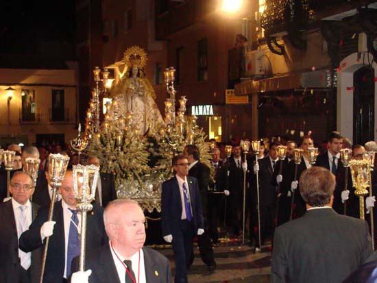 5º.- La organización del colectivo de madrinas no la efectúa la Cofradía de Caballeros directamente, sólo colabora en ella, ya que al tratarse de mujeres carece de la potestad estatutaria necesaria para regular este colectivo, independientemente no se si habéis leído las normas que lo regulan, en ningún caso se cobra por participar, la inscripción se hace por riguroso orden de petición y el donativo que se aporta es totalmente voluntario. Y por cierto no salen detrás de la Virgen sino delante.