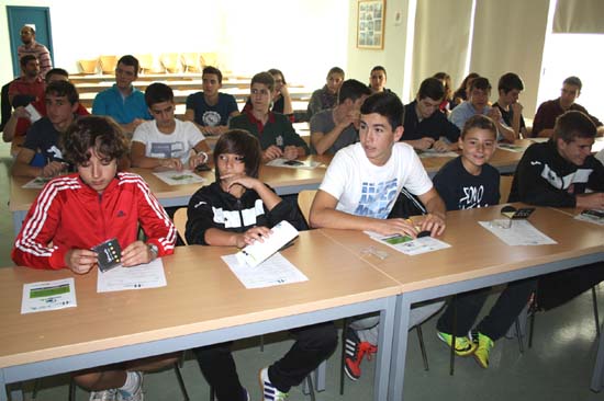 Tras una breve charla, los alumnos pasan de la teoría a la práctica para que conozcan sobre el terreno las diversas aplicaciones del hidrógeno, en vehículos y electrodomésticos a un scalextric sin la utilización de energía eléctrica o pilas, como lo han vivido esta mañana los estudiantes del Instituto de Inmaculada Enpetrol.