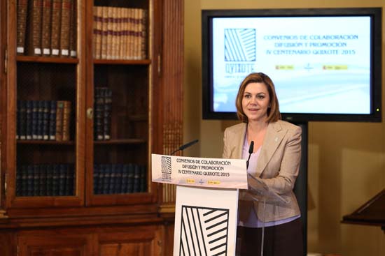 Así lo ha hecho saber María Dolores Cospedal durante la firma de los convenios de colaboración entre el Gobierno de Castilla-La Mancha y los ministerios de Educación, Cultura y Deporte y Fomento, para la difusión y promoción de los actos conmemorativos del IV Centenario de la publicación de la segunda parte de ‘El Quijote’.