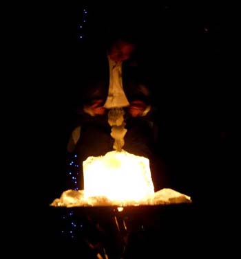 Pero antes de acabar la función, el más difícil todavía. El hombre de hielo, el escapista de la insensibilidad, el Houdini dispuesto a liberarse de las cadenas de la indiferencia. Comienza la cuenta atrás, la tensión crece conforma pasan los minutos, hay problemas para escapar y se precisa ayuda extra. Toca que desbastar ese monolito de hielo en el que nuestro escapista está encerrado, el tiempo pasa y la atmósfera se vicia de angustia. Definitivamente, el hombre de hielo se queda a medio camino en su intento por salvar los pantanos de la insensibilidad. Las luces se apagan, el espectáculo se ha acabado, nada ha salido como se esperaba en circo submarino, en esta función de desatinos, en este despropósito que es el ser humano, prisionero de sus mezquindades y defectos, de un ego que distorsiona cualquier intento de acercamiento honesto.
