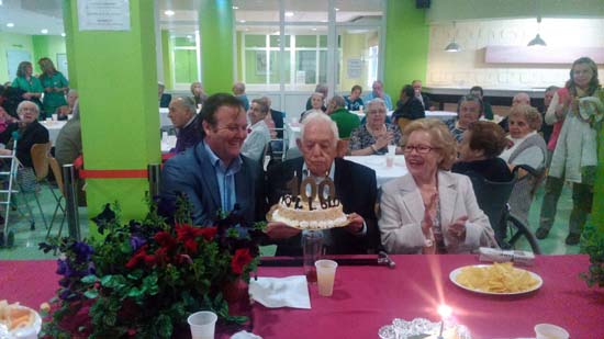 Toribio Domínguez Torres cumplirá cien años el próximo domingo, pero hoy lo ha celebrado por todo lo alto con todos sus compañeros, incluida su pareja y familia, en la residencia de mayores “Las Pocitas del Prior” de Puertollano. Toribio, que participó en la legendaria batalla de Brunete durante la Guerra Civil, ingresó en la residencia hace más de 10 años, y fue aquí donde rehizo su vida, hasta el punto de encontrar pareja.