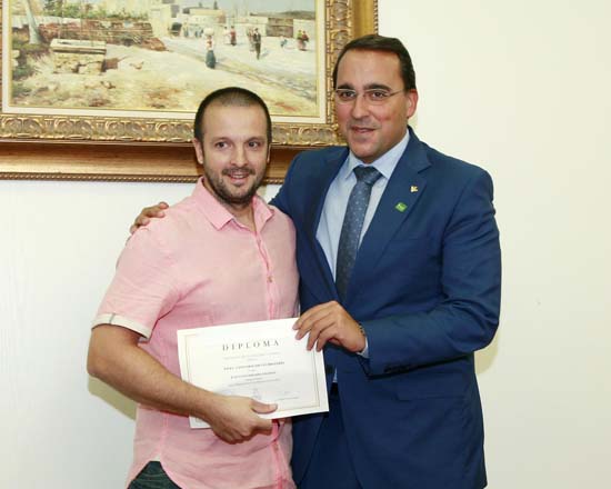 El director general de Globalcaja, Pedro Palacios, hizo entrega de uno de los premios que organizó APRECU en su 35 aniversario, con motivo del Concurso de Cuchillería. Globalcaja, una edición más, muestra su compromiso con este importante sector empresarial, que es un «auténtico embajador» de los productos que se hacen en nuestra tierra y que son referente en todo el mundo por su calidad, manifestó el director general.