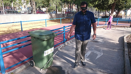 Alumnos del Colegio Santo Tomás de Villanueva han participado esta mañana en un circuito de accesibilidad organizado por la ONCE en el Parque de Gasset. El propio concejal de Movilidad, David Serrano, ha podido comprobar en primera persona cómo realizan sus desplazamientos por la ciudad las personas invidentes.