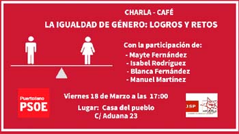 En el marco de la celebración del Día de las Mujeres desde el PSOE de Puertollano quieren poner en valor la importancia de la lucha por la igualdad entre hombres y mujeres en nuestra sociedad. En la conmemoración de este año los socialistas celebrarán una Charla-Café a la que invitan a toda la ciudadanía de Puertollano.