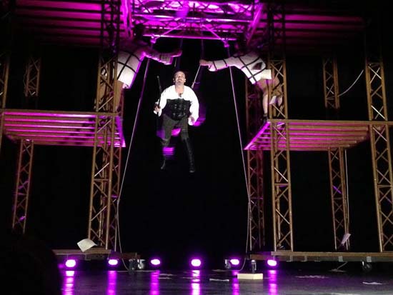 Este viernes, a las 22:00 horas, la Compañía de Teatro Narea representará en El Bonillo (Albacete) un espectáculo montado sobre una estructura metálica de tres niveles que cuenta con 6 metros de altura y 10 de diámetro, y que alberga los diferentes escenarios en los que se recrean las aventuras de Don Quijote, los encuentros con Dulcinea, la batalla contra los molinos de viento, el viaje a lomos de Clavileño, la lucha contra el Caballero de la Blanca Luna… y otras impresionantes escenas.