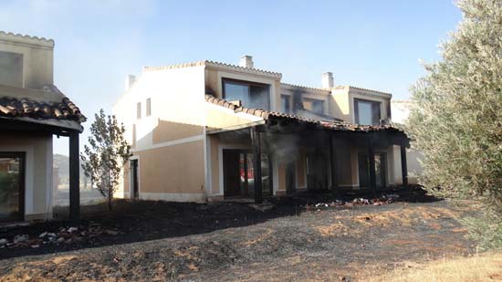 Según ha informado el servicio de Emergencia Ciudad Real, el aviso de ha producido a las 15.35 horas de este martes, y la actuación ha estado coordinada por efectivos de Infocam, que se han encargado del incendio de seis hectáreas de pastos y maleza (correspondientes a lo que iba a ser un campo de golf), y por los bomberos de Emergencia, que han acometido las tareas en las viviendas.