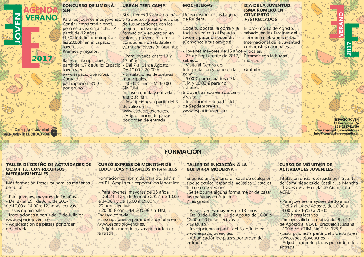 Todas las inscripciones para los cursos y talleres se hacen a partir del 3 de julio en www.espaciojovencr.es.