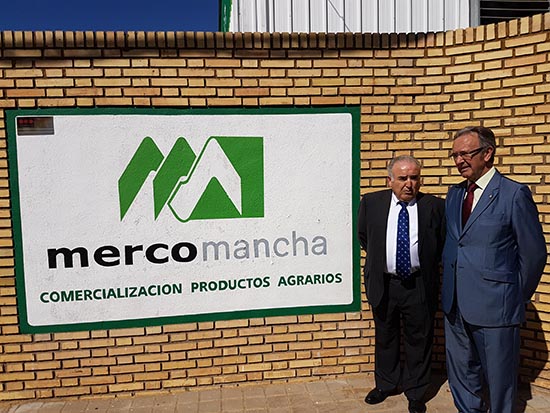 El presidente de Globalcaja, Carlos de la Sierra, acompañado de varios directivos de la entidad, visitó las instalaciones de la empresa Mercomancha, ubicada en el polígono industrial de Manzanares (Ciudad Real).