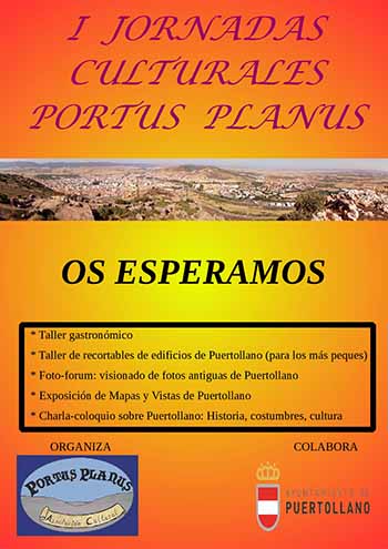 La Asociación Cultural Portus Planus y el Moto Club Mineros Puertollano invitan a toda la ciudadanía a las I Jornadas Culturales “Portus Planus” que se van a desarrollar el viernes 8 de diciembre a partir de las 17:00 en la sede de Moto Club Mineros, en el Apartadero Calatrava 13. Habrá taller gastronómico, taller de recortables para los niños, foto-forum (con fotos antiguas de Puertollano) y exposición de mapas y vistas de Puertollano.