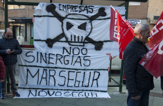 Eusebio Gª del Castillo Jerez.-   Algo más de medio centenar de personas se han concentrado en la Plaza del Pilar, a las puertas de la sede de la Tesorería General de la Seguridad Social, para mostrar su rechazo a la adjudicación del servicio de vigilancia y seguridad de este ente público a Marsegur, una empresa de las denominadas low cost que, según denuncian los sindicatos, supone “una amenaza” para las condiciones laborales de los trabajadores.