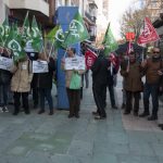 concentración contra adjudicación Mansegur - 1Antonio Sánchez, de la Federación de Construcción y Servicios de Comisiones Obreras, explicaba que el motivo de la movilización, en la que han participado también CSI·F y UTGE, es la adjudicación del contrato de vigilancia y seguridad de las sedes provinciales de la Tesorería General de la Seguridad Social de Ciudad Real a Marsegur, una empresa que aplica su propio convenio en lugar del sectorial de la seguridad privada. De la noche a la mañana, advertía, los 16 vigilantes de la TGSS de Ciudad Real pasarán de percibir entre 1.000 y 1.100 euros por un ochenta por ciento de la jornada laboral a cobrar unos 500 o 600 euros, aproximadamente.