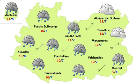 Marzo va a comenzar como termina febrero, con agua. Esperamos para este día cielo muy nuboso o cubierto con precipitaciones moderadas y persistentes en la mitad occidental de la provincia que se extenderán al resto desde mediodía o primera hora de la tarde. Estas precipitaciones podrían tener momentos de intensidad en el tercio oeste y en las sierras. Muy a última hora, ya casi cuando vaya a terminar el día, cesarán gran parte de las precipitaciones y quedarían intervalos nubosos, aunque sin desaparecer el riesgo de algún chubasco débil y aislado. Habrá puntos del oeste de la provincia y de los Montes de Toledo donde podrán superarse los 20-30mm a lo largo del jueves, mientras que en el este no parece que se vayan a sobrepasar por mucho los 5mm.
