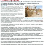 Lo del torreon demuestra lo que la historia y la cultura le interesa a nuestra corporación municipal. La anterior del pp nada más y nada menos que querían meter las palas excavadoras y la actual no sabe nada «proyecto» para el futuro. Será como el proyecto de la nueva ronda que lleva más de 20 años en los cajones. El polígono industrial otros tantos años. El caso es que inversiones de la junta 0.
