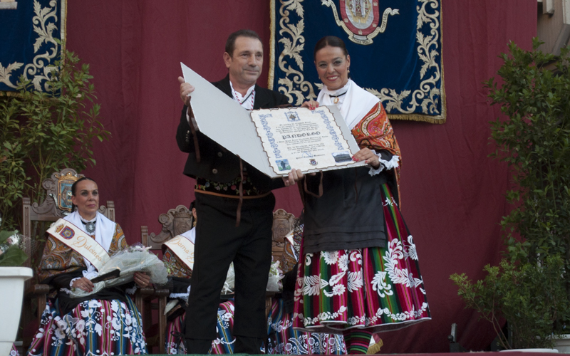 Pilar Zamora acompañó sobre el escenario de la Plaza Mayor a los pandorgos de 2015, 2016 y 2017, Francisco José Turrillo, José Luis Vendrell y Magdaleno León, respectivamente. La primera edil ha manifestado en redes sociales su pesar por “no poder vestir el traje de manchega” en esta ocasión.