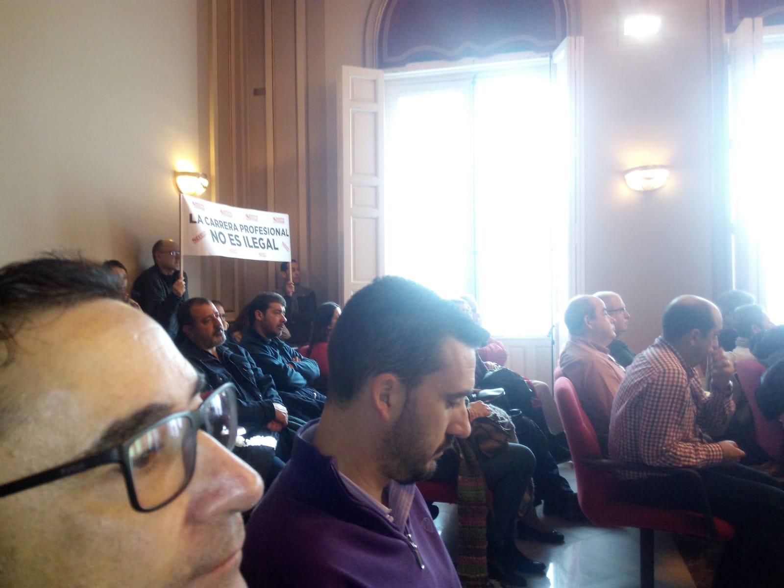 Un grupo de funcionarios de la Diputación se han concentrado esta mañana durante la celebración del Pleno de la institución provincial para reclamar sus reivindicaciones, relacionadas con la formación y carrera profesional, hasta la fecha “desoídas”. Además, denuncian que la diputada de Personal «ha impedido» la celebración de una asamblea que CCOO ha convocado en el patio de luces del Palacio de la Diputación.