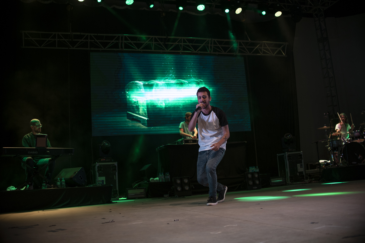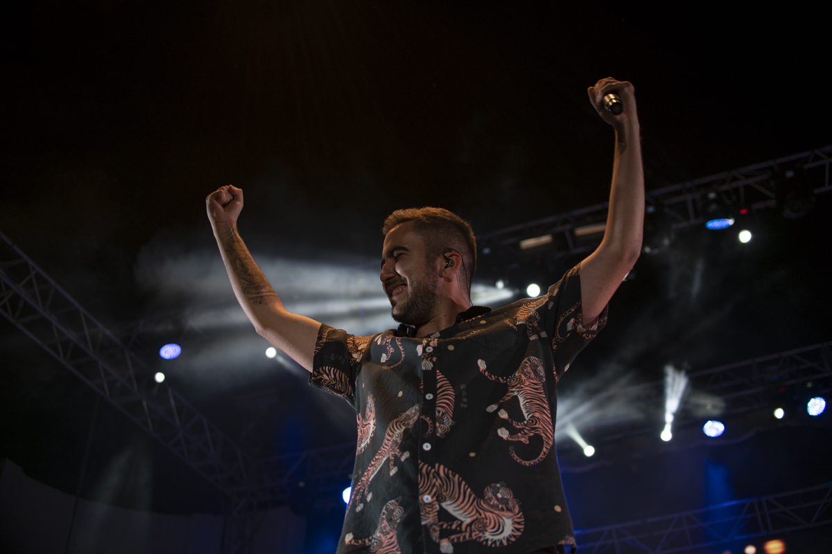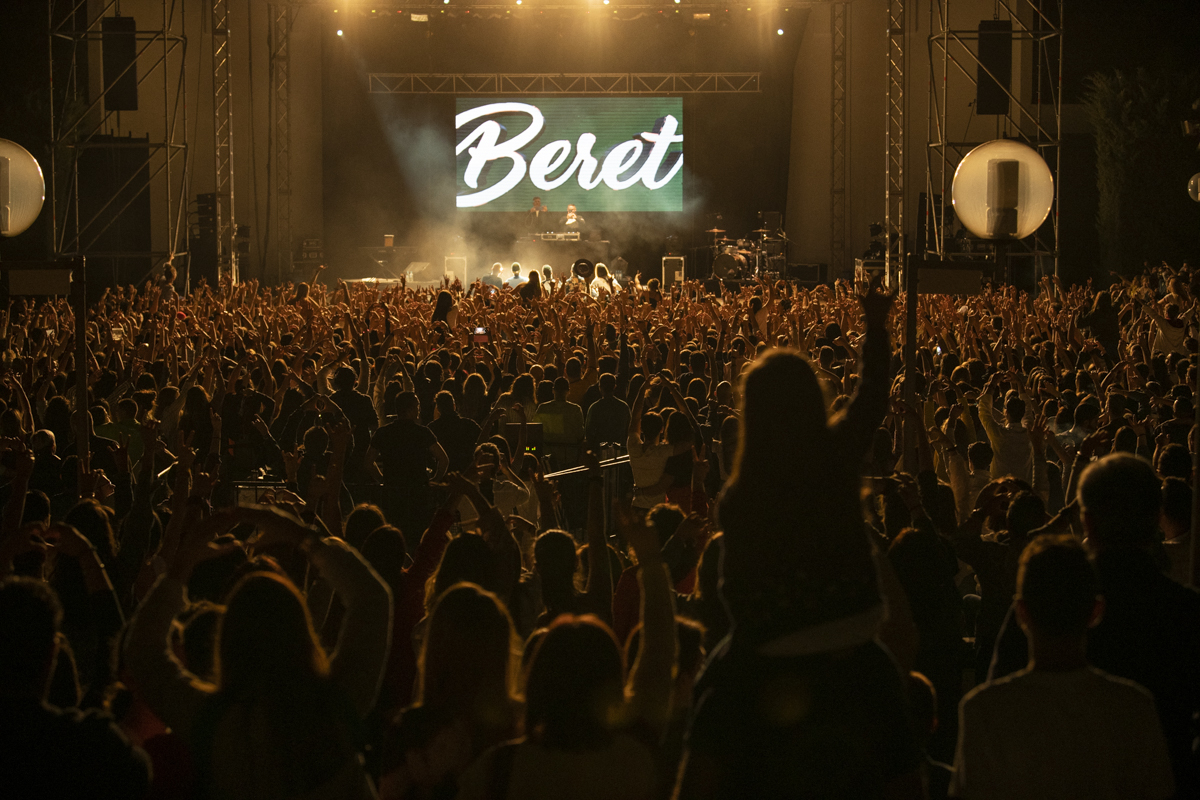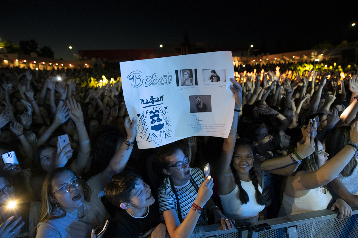 Beret se subió al escenario a ritmo de Bye Bye. A continuación animó a cantar y a bailar al público, a tirar en la vida de energía positiva y centrarse en lo Esencial. Disfrutó poniendo a prueba al público, que cantaba cada estrofa cuando el artista callaba.