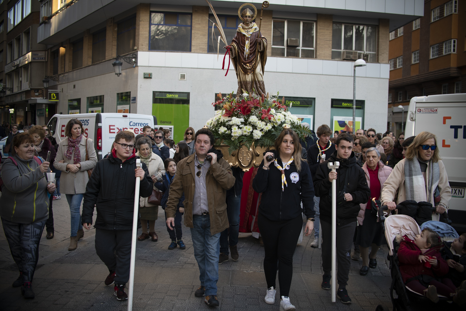 Con motivo de la festividad de san Blas, decenas de fieles de capital han sumado a la procesión que, desde la parroquia de San Pedro, ha recorrido esta tarde las calles del centro de la capital. El santo ha sido llevado en andas por el grupo de Scouts de San Pedro. Algunos fieles portaban velas en una procesión que abría un estandarte del propio san Blas.