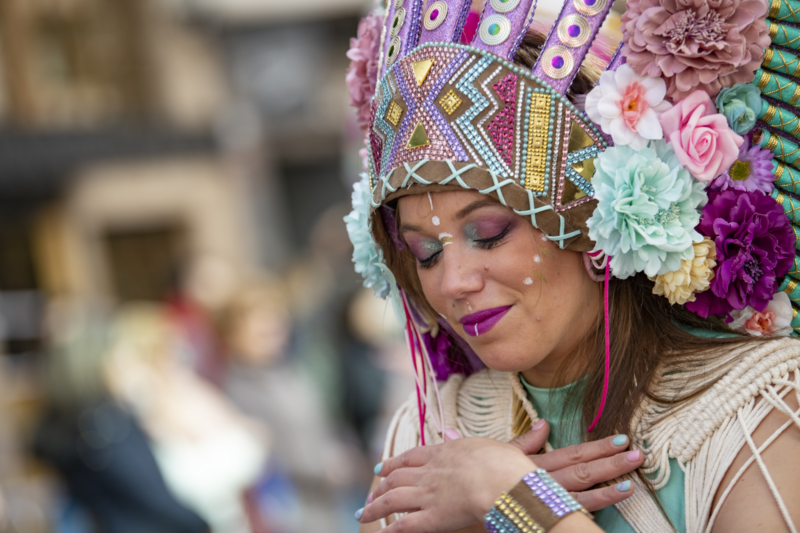Por otro lado, las loro, con el tocado que llevan simbolizan los colores, plumaje y fantasía de ese traje. Aunque claro, tú lo más que has visto habrán sido las palomas cojas del campanario de la iglesia de tu pueblo.