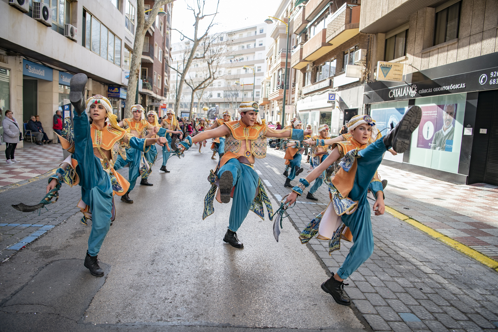 En la categoría Comparsas (Murgas y Charangas sin carroza), el primer premio dotado con 2.500 euros más trofeo ha ido a parar a Las Ventas con Peña Aguilera (Toledo). Concretamente a la comparsa la Asociación Cultural Peñafiel, con su montaje “Turaka”. El segundo clasificado ha sido “La peste negra en Venecia”, el tema que presentaban “Euphoria Dance” de Villafranca de los Caballeros, con un premio de 2.000 euros. El tercer premio ha sido para la Asociación Cultural Juvenil Huríes de Quintanar de la Orden con su montaje “El ejército de Juana de Arco, la leyenda continúa”, dotado con 1.000 euros.