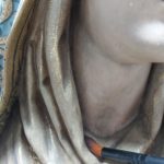 De la misma manera, el tratamiento sobre grietas con rellenado de resina epoxídica, y el reestucado de las zonas expuestas en la que se había perdido la capa preparatoria de la decoración, supuso un condicionante que debía ser acometido para la estabilidad futura de la pieza en pos de su conservación.