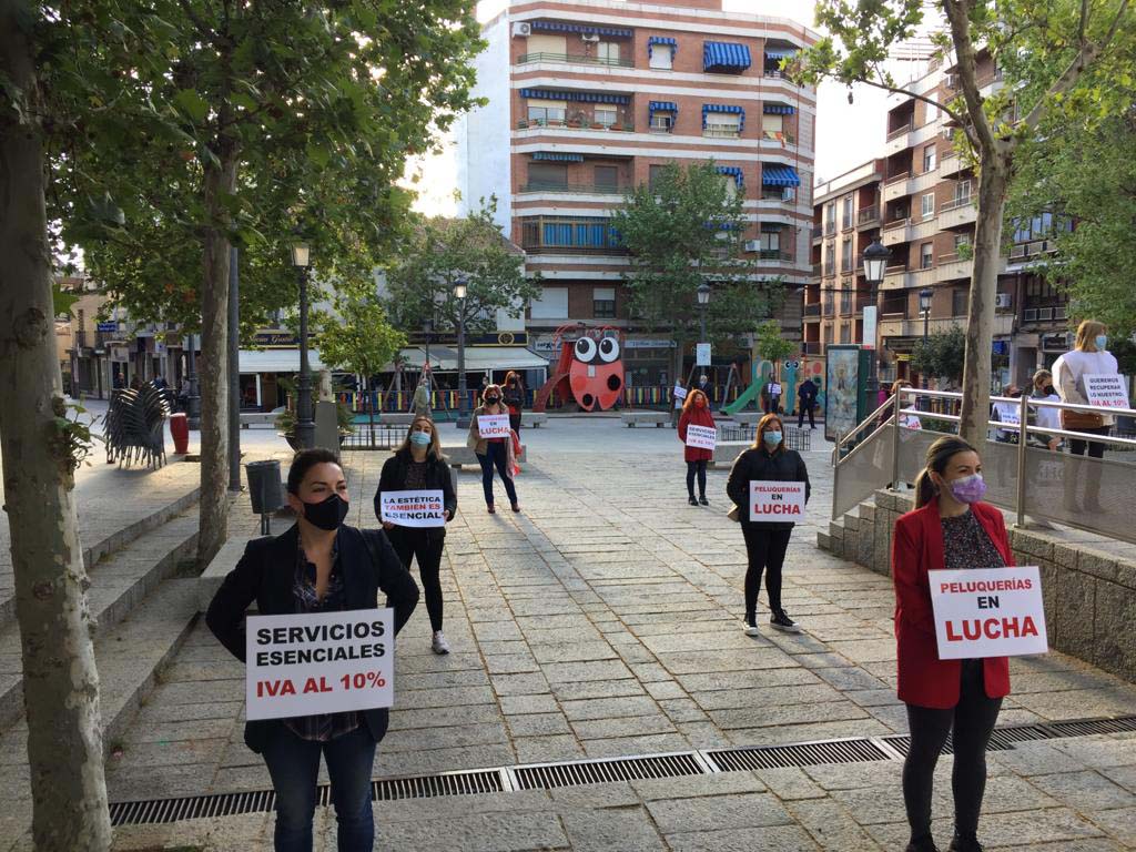 Un grupo de profesionales de peluquerías y salones de belleza han vuelto a concentrarse a primera hora de este lunes frente al Ayuntamiento de Puertollano para mostrar de nuevo su reivindicación para que el gobierno central les reduzca el IVA al 10 %.