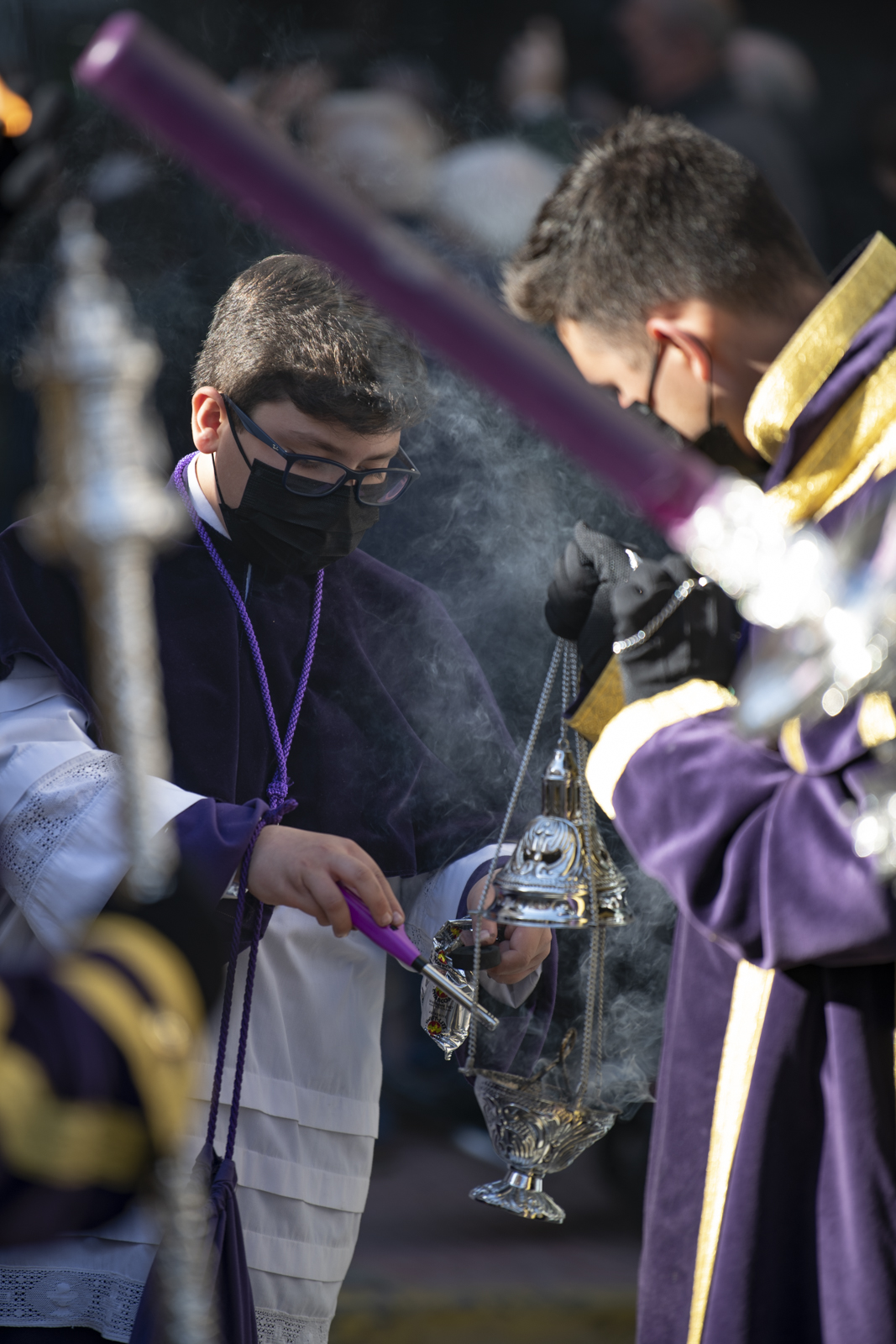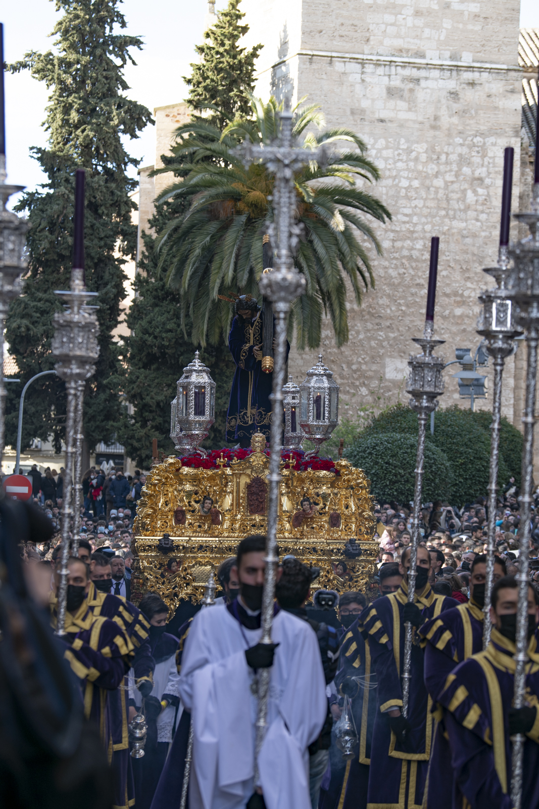 El parón de la pandemia no ha impedido que la hermandad avance en su importante proyecto patrimonial. Así, este Domingo de Pasión se ha estrenado el dorado completo de la canastilla delantera, trasera y el respiradero delantero realizado por el artista Manuel Verdugo. El paso también estrena las pinturas de las esquinas dedicadas a los dominicos, claretianos y a las virtudes de justicia y templanza. Antonio Díaz Arnido es el responsable de realizar las obras pictóricas que forman parte del programa iconográfico del misterio de Jesús Nazareno. El modelado de la capilla delantera y las cabezas del apostolado a cargo de escultor José María Leal son novedad este año, al igual que el relicario plateado dedicado a Santa Ángela de la Cruz elaborado por los Hermanos Delgado.
