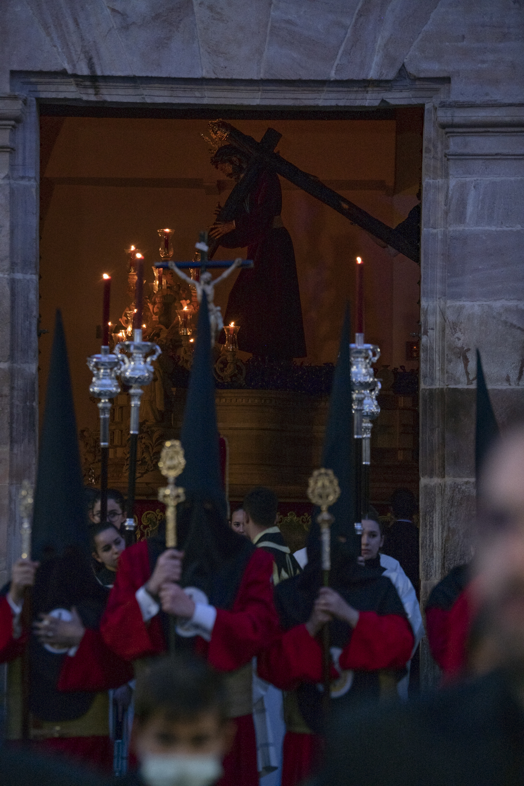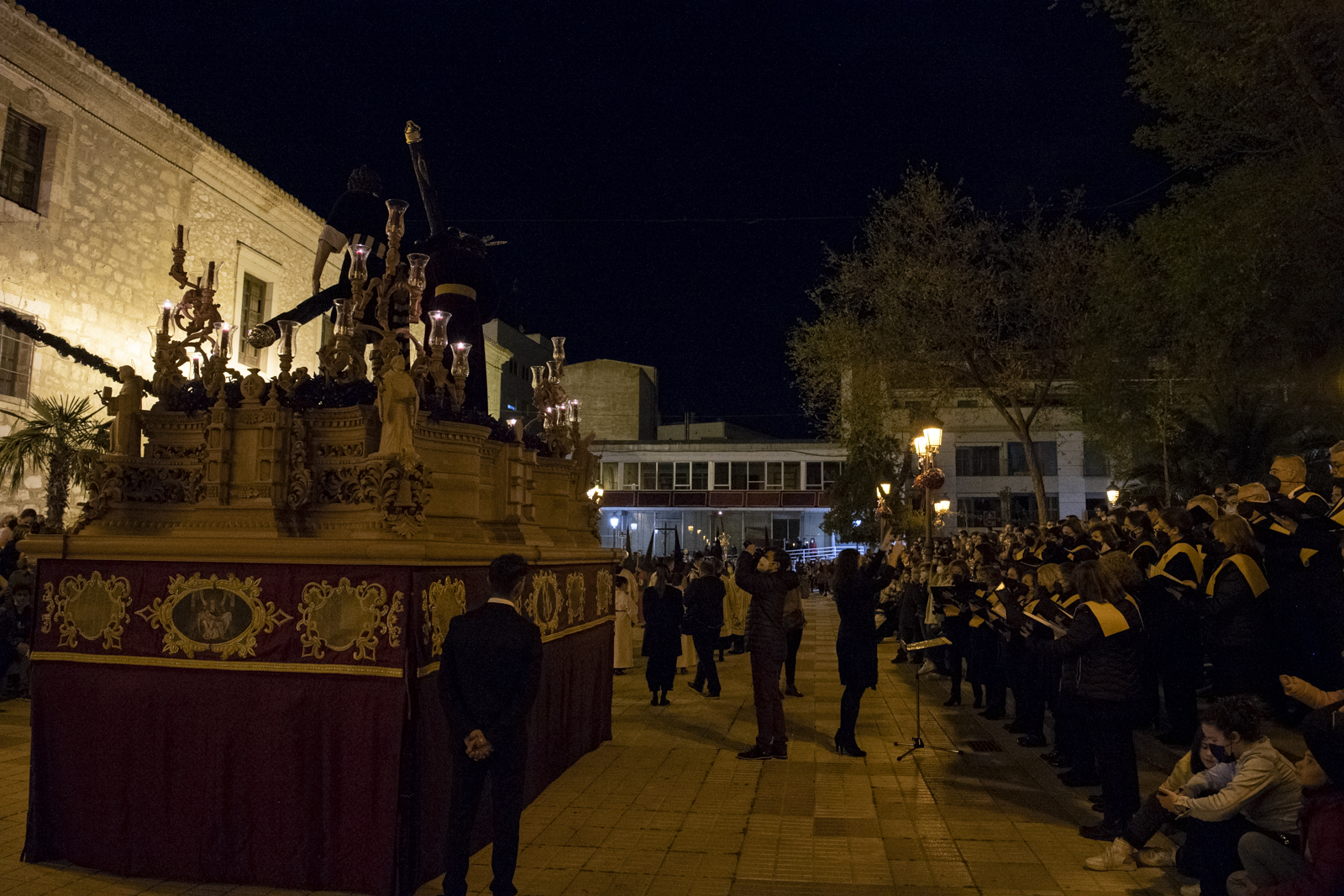 UN PASO El Señor es una obra inacabada de Víctor González Gil, concluida por Faustino Sanz Herrara en 1992. El Cirineo es obra de Miguel Angel González Jurado de 2006. Procesionan sobre un paso barroco realizado en madera de cedro aún en fase de talla, obra de los talleres de Alberto Fernández Romero de Villarrubia de los Ojos. En las esquinas delanteras aparecen en tamaño académico las imágenes de San Juan de Ávila y Santo Tomás de Villanueva, santos nacidos en nuestra provincia, aún sin policroma, obra de Jesús M. Romero. El paso es portado por treinta y cinco costaleros.