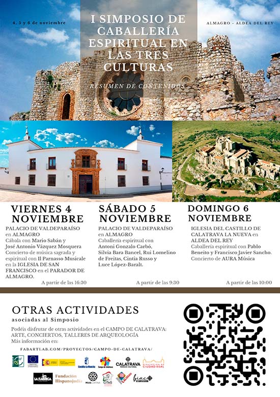 El Palacio de los Condes de Valdeparaiso, en Almagro, y el Sacro-Convento de Calatrava La Nueva, en Aldea del Rey, acogerán del 4 al 6 de noviembre el I Simposio de Caballería Espiritual en las Tres Culturas, enmarcado dentro del proyecto ‘100% Calatrava’ que la asociación cultural La Fábrica ha organizado con el apoyo de la Asociación para el Desarrollo del Campo de Calatrava.