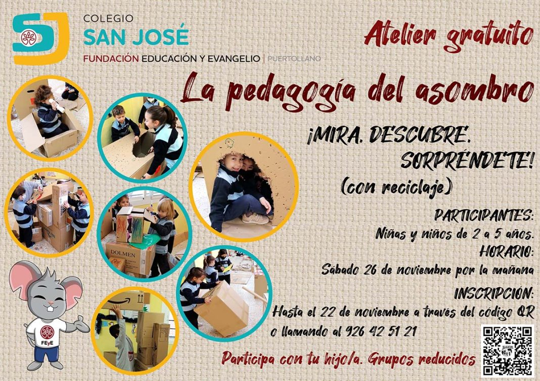 El Colegio San José de Puertollano impartirá durante la mañana del sábado 26 unas jornadas gratuitas de Atelier y Pedagogía del asombro, para niños y niñas de entre 2 y 5 años, con un adulto acompañante.