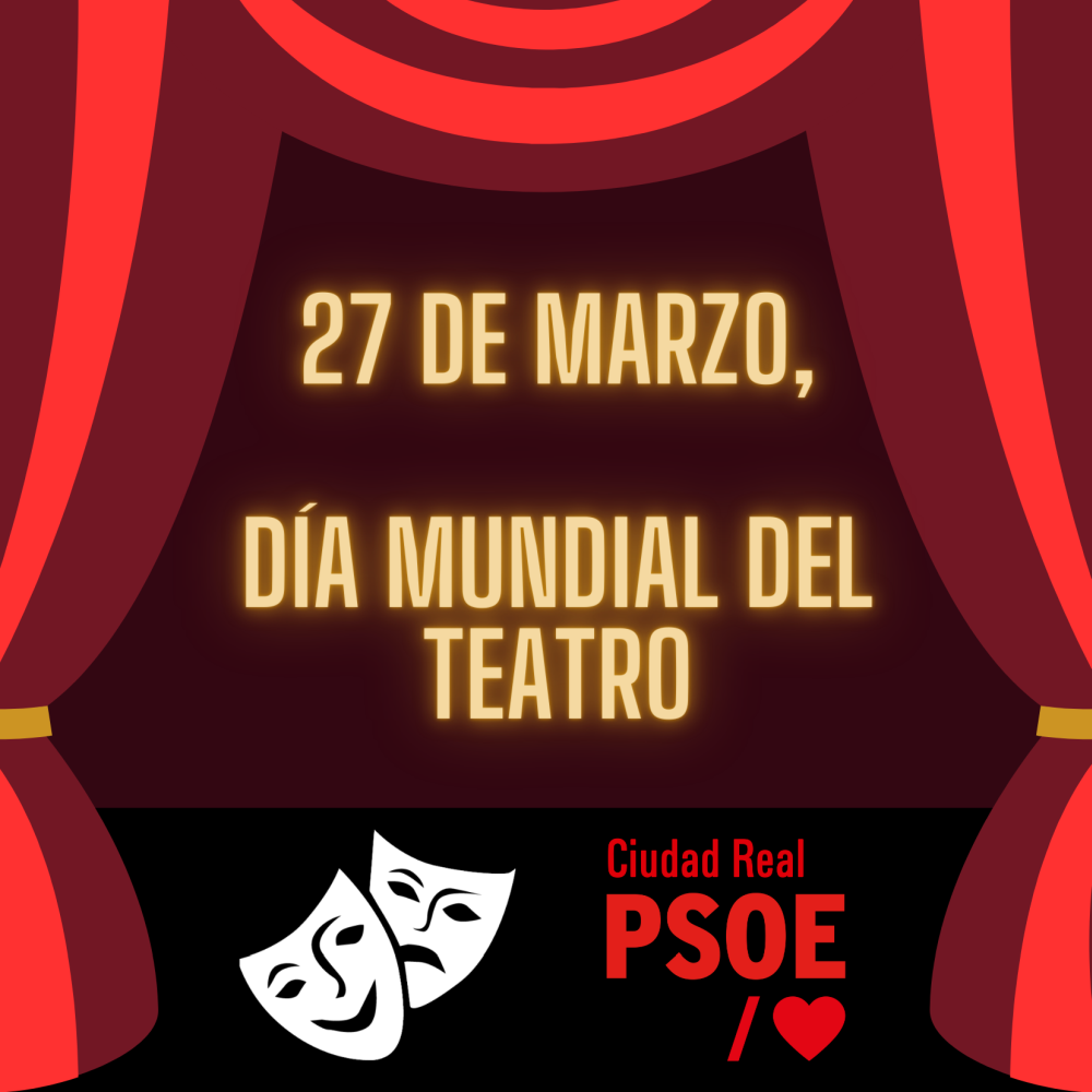 Comisión Ejecutiva Local del PSOE de Ciudad Real.- El teatro, comovorágine de sentimientos que transcurren durante el espectáculo, se utilizó como bálsamo emocional para lograr una comunión entre los países devastados por la Segunda Guerra Mundial en 1954, cuando nace entre las bambalinas parisinas la maravillosa idea de celebrar su día un 27 de marzo. Más tarde, en 1961, esta idea es recogida por el Instituto Internacional del Teatro de la UNESCO, organizando una jornada mundial para dar a conocer las artes escénicas a lo largo y ancho del globo terráqueo.