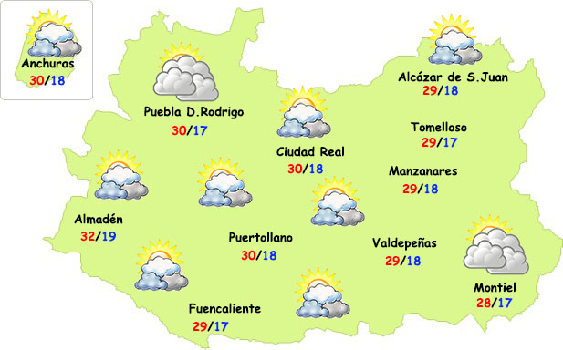 El cielo se ha ido despejando poco a poco con el transcurrir del inicio de semana y este martes vemos mucho más el sol en la provincia de Ciudad Real. Las temperaturas, aunque han subido con respecto con respecto al domingo, se están manteniendo en valores agradables. Durante la franja central de esta semana tendremos más nubosidad, pero sin apenas agua y las temperaturas podrán ganar algún grado más: