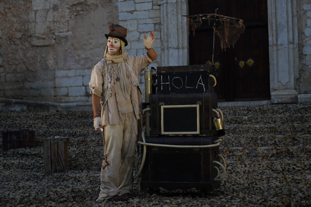 Cargado con sus baúles y lo poco que le queda  intentará transmitir al público todo el amor que lleva dentro a través del juego y de su manera de conectar con las personas mediante el teatro gestual.