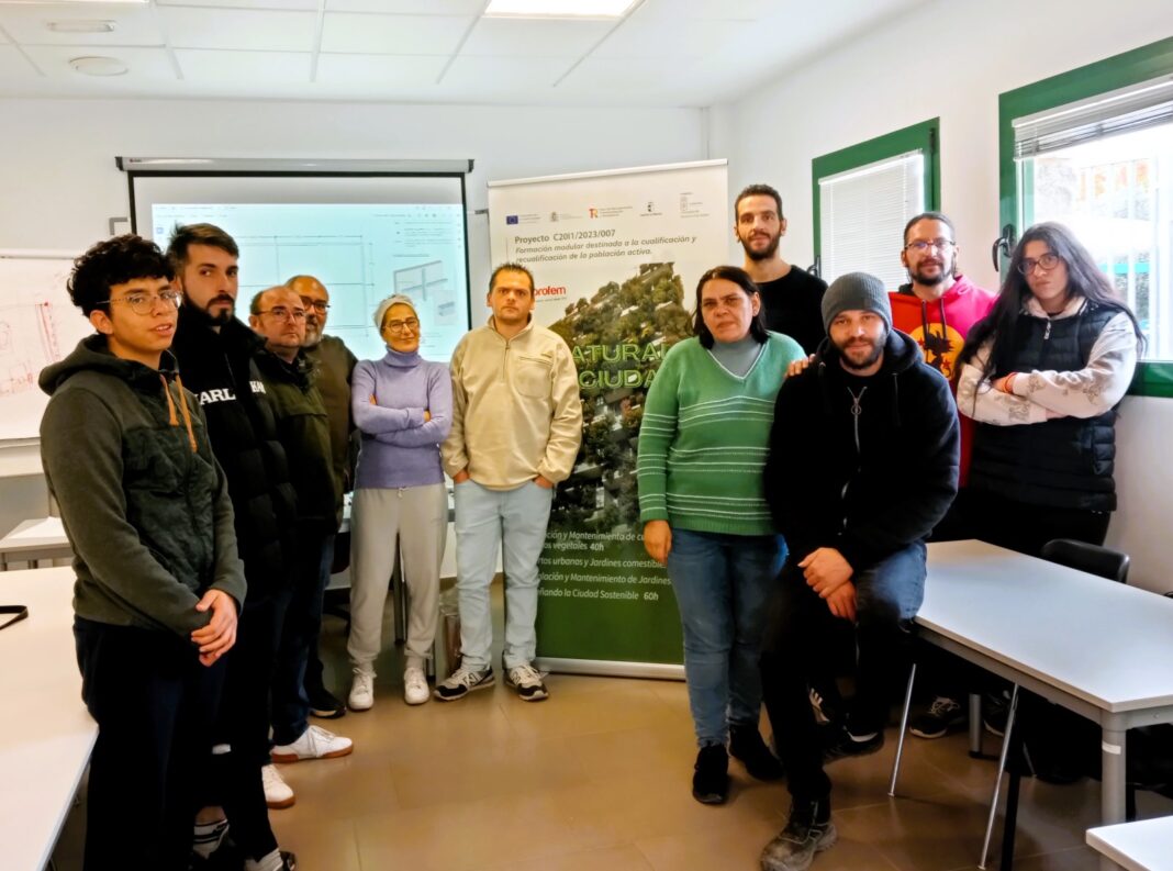 La Concejalía de Servicios a la Ciudad, del Ayuntamiento de Ciudad Real, representada por su concejal d. Gregorio Oraá Sanchez Cano, el jefe de servicio de Parques y Jardines, José Arrieta León, y Luis F. Barrios coordinador de APROFEM, entidad organizadora del programa formativo, pusieron fin al programa “Renaturaliza la Ciudad” con la entrega de diplomas de los 14 alumnos participantes.