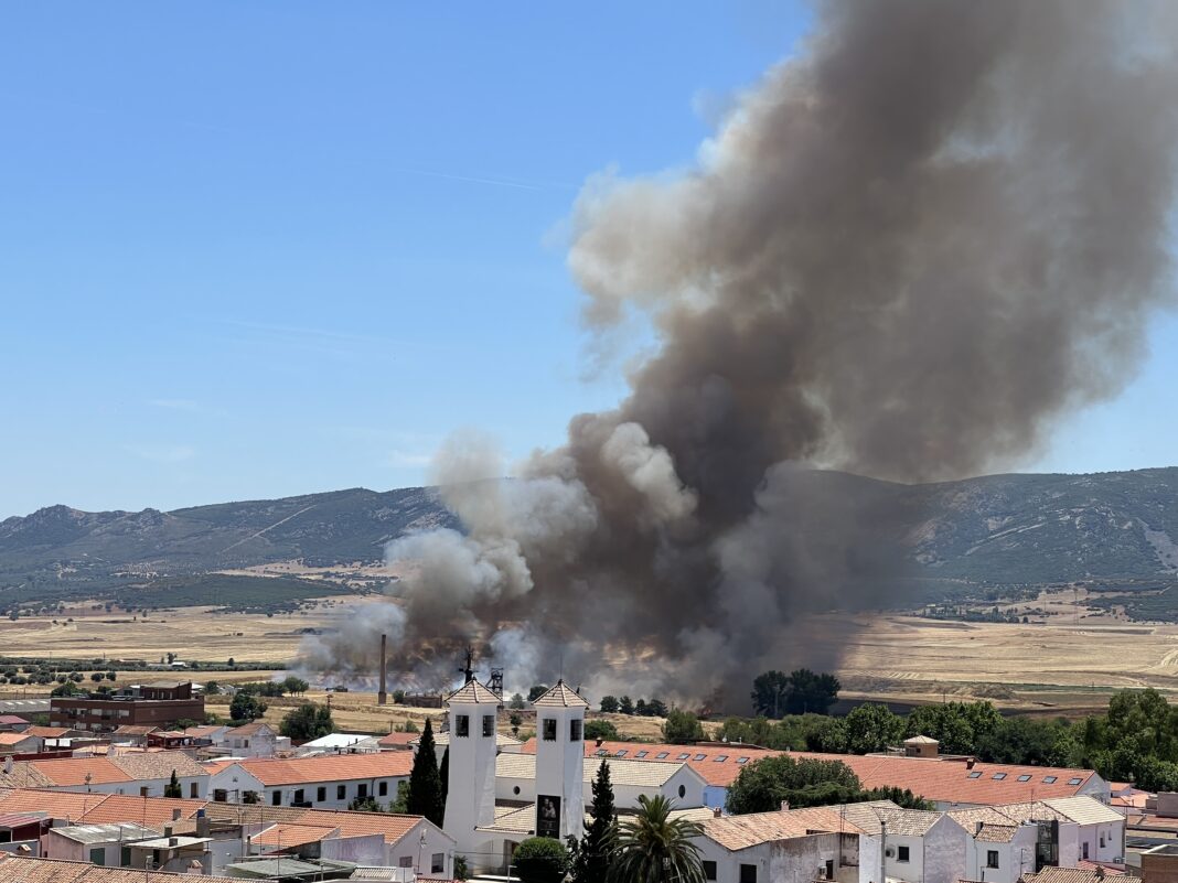 Bomberos del parque de Puertollano y de Infocam trabajan en las labores de extinción de un incendio de pastos y maleza que está provocando una gran columna de humo en las inmediaciones del parque de la mina de San Esteban, al sur de Puertollano. El incidente se ha iniciado sobre las 14.20 horas de este domingo, y en estos momentos los efectivos, 31 personas, un medio aéreo y cuatro terrestres, siguen trabajando en las tareas de control de las llamas.
