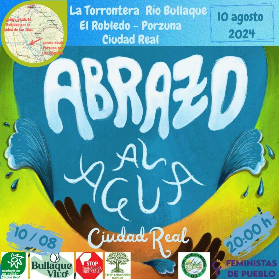Organizan este acuoso y simbólico abrazo Ecologistas en Accion Ciudad Real. Bullaque Vivo. Stop ganadería industrial. Stop arboricuo en Daimiel. Asociación estudio y defensa de la Naturaleza. Feministas de pueblo. La Torrontera, Río Bullaque, Porzuna, El Robledo y Ciudad Real.