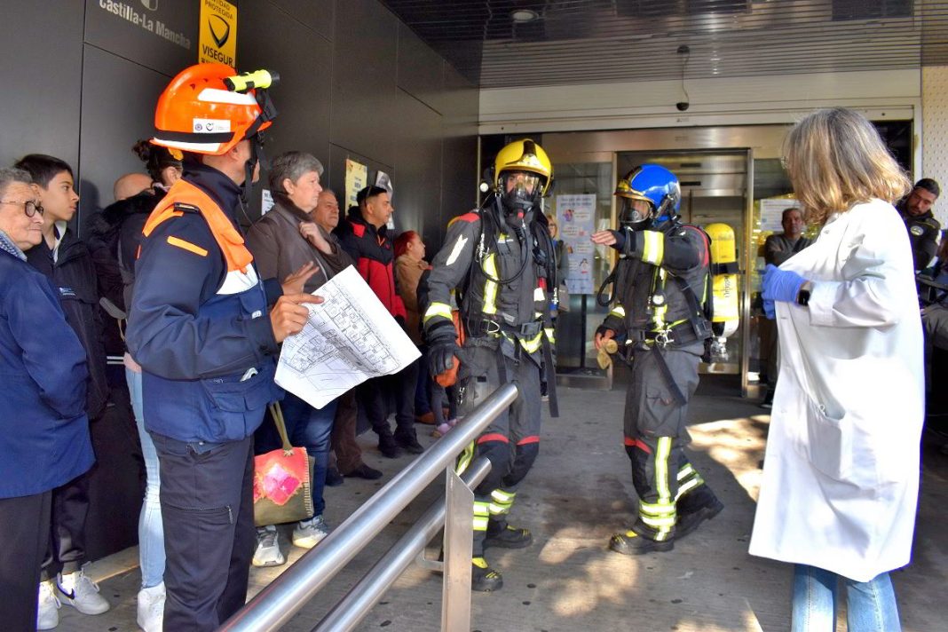 Una vez detectada la salida de humo el personal ha pulsado uno de los botones de emergencia y a partir de ahí el grupo de intervención ha intentado apagar el fuego y al no ser capaces han ordenado la evacuación inmediata de todas las personas que se encontraban en el interior del edificio. “Los pacientes han sido reales, desconocían que hubiese un simulacro de incendio”, reconoció Ruiz.
