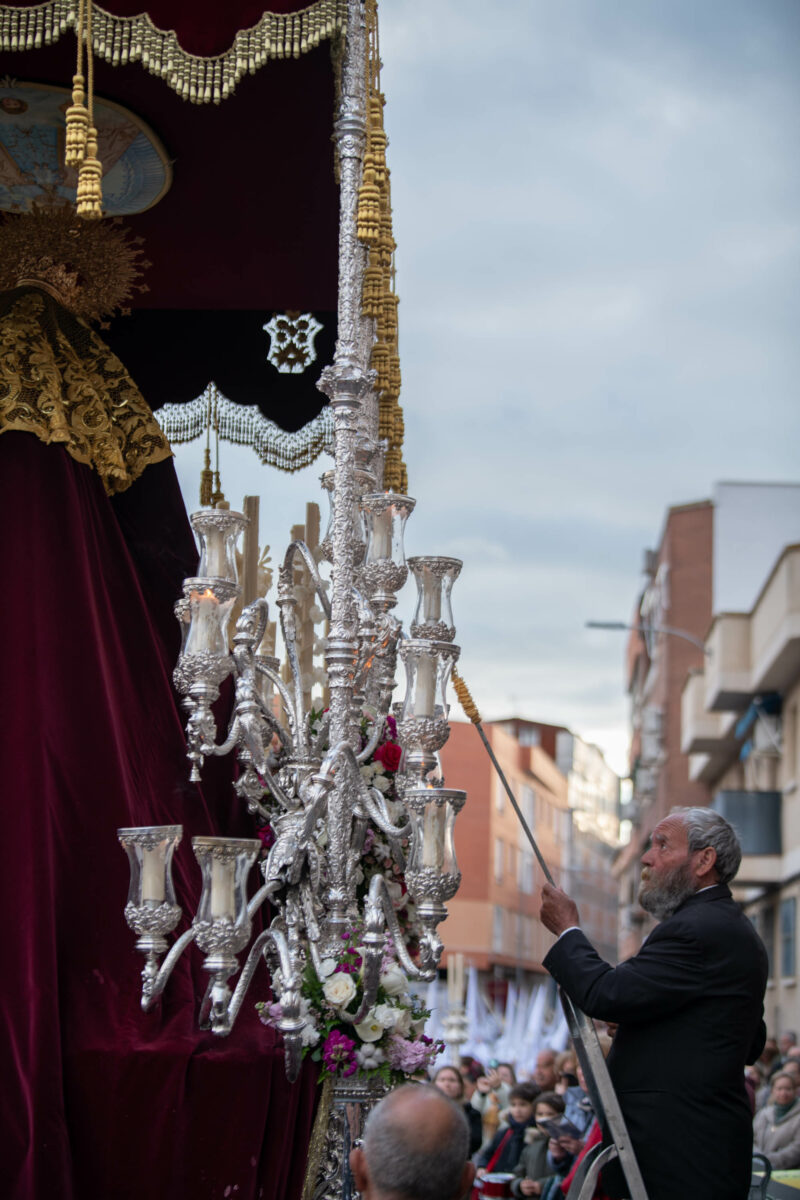 En un comunicado, la cofradía explicó que ,»en un día lleno de incertidumbres, y tras la consulta de los partes meteorológicos de la Aemet por parte de la Junta de Gobierno, a las 19:15h de la tarde se plantó la Cruz de Guía de nuestra Cofradía en la puerta del Guardapasos». Una vez transitando el cortejo por la Carrera Oficial, «y ante la presencia de la lluvia, que en un principio se nos dijo que iba ser esporádica, la Cofradía decide acelerar la marcha del cortejo». «Una vez comprobado que la lluvia que iba ser ser esporádica se convertía en persistente, se decide recortar el itinerario recogiéndose la Cofradía antes de lo previsto», señala.