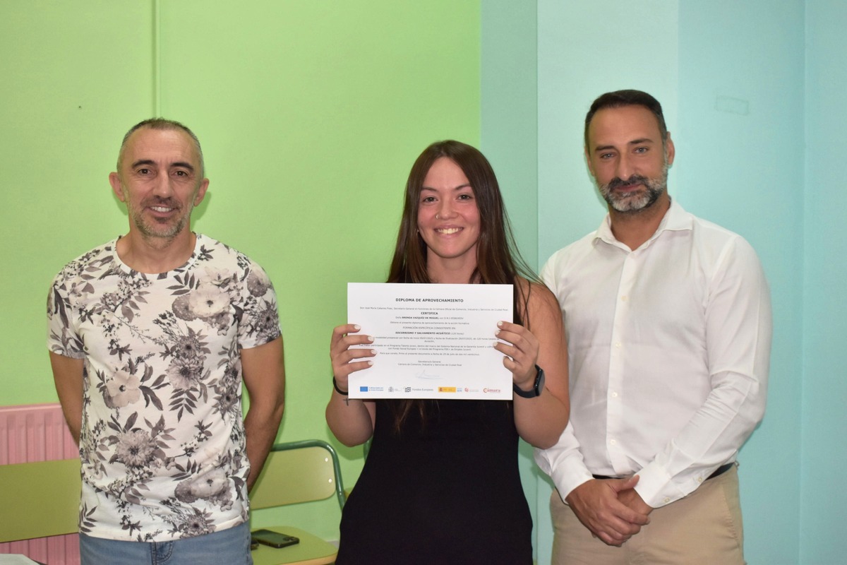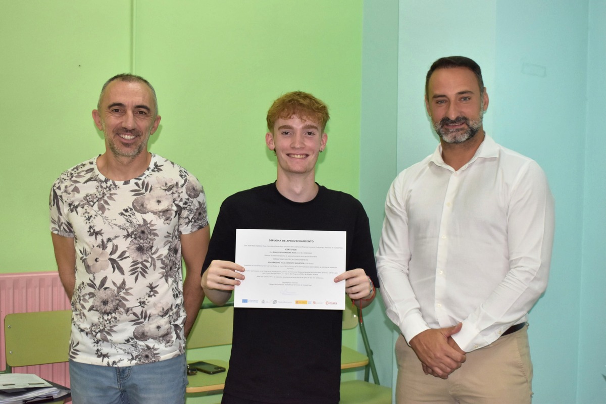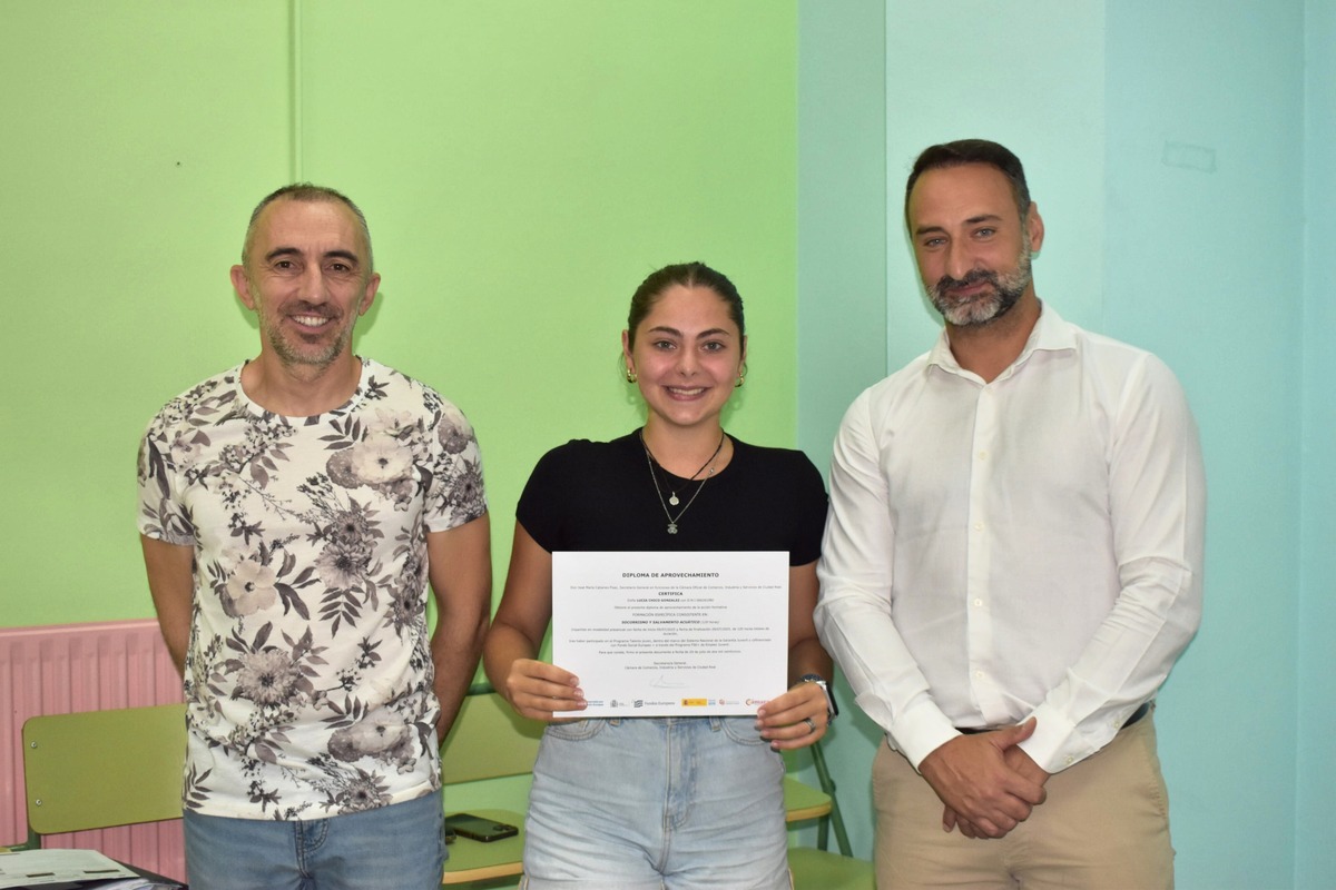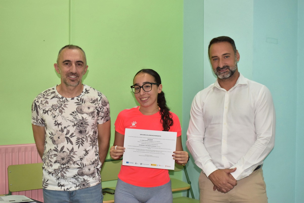 El curso ha terminado con la entrega de diplomas de manos del concejal de deportes, Javier Trujillo; Arantxa Velastegui, en representación de la Cámara de Comercio, y Raúl Serrano, representante del Patronato Municipal de Deportes.