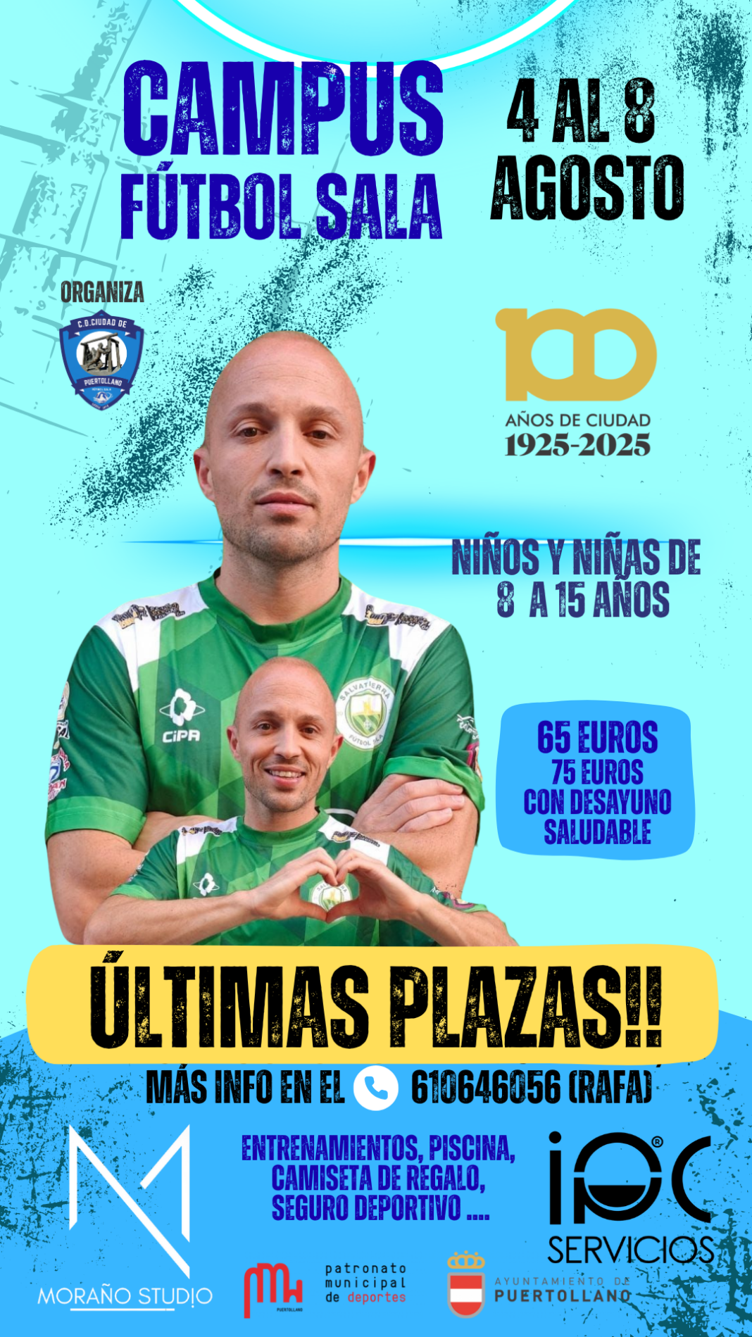 Mañana finaliza el plazo para inscribirse en el segundo Campus de verano, y quedan muy pocas plazas para completar el mismo. Si estás interesado en que participe tu hijo o hija, todavía lo puedes inscribir, te puedes dirigir a cualquiera de los entrenadores o directamente al club, al 610646056 (Rafa).